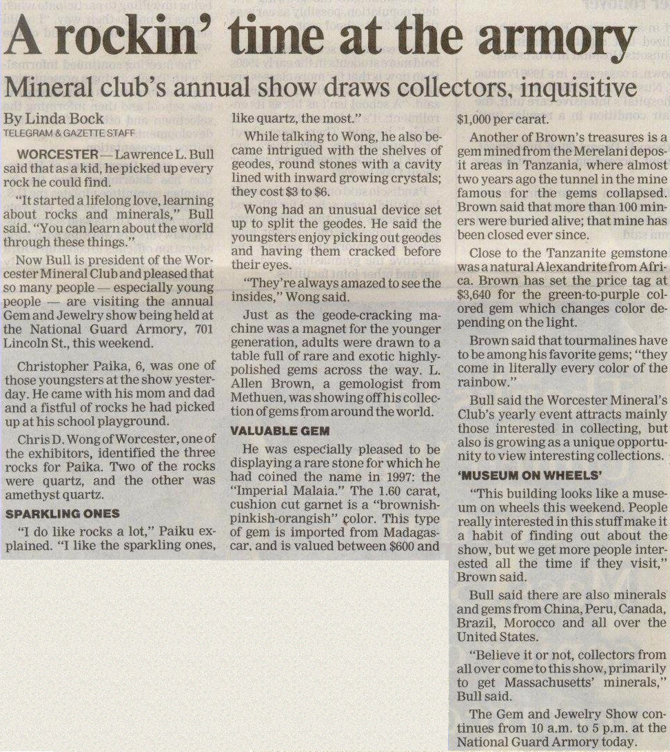Worcester Telegraph - Worcester Gem/Mineral Show November 1999