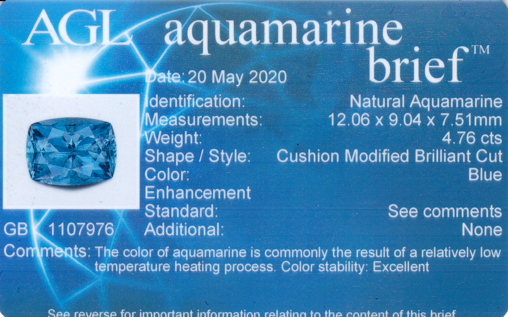 in that this should be an unheated Aquamarine - most Aqua is heated to drive the yellow component off leaving a more pure blue.