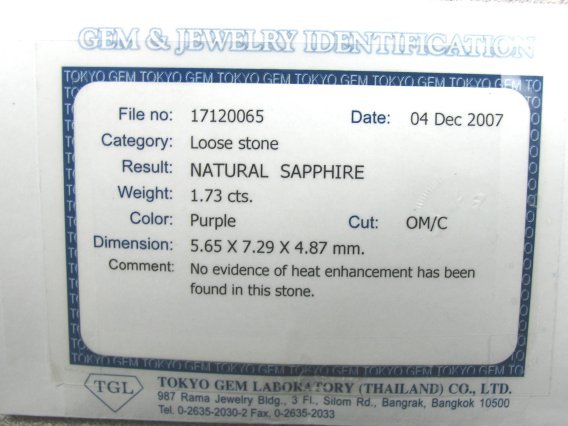 1.03ct UNHEATED Ruby, certs indicates red with a modifier of purple. Unheated Ruby is not common and this is priced way below what one would expect. (awa-17-06) $6,695 |