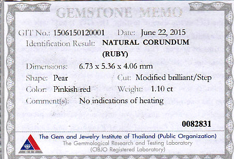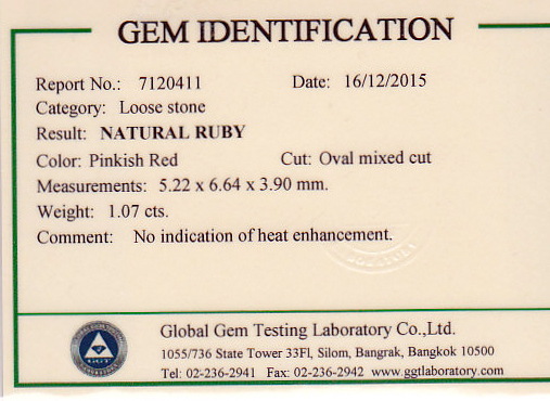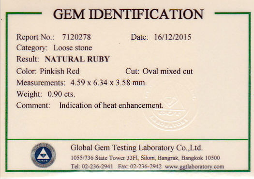 GIA Certed Ruby weighing 0.98cts, purplish red, UNHEATED; (egaj-11-03) $5,605 |