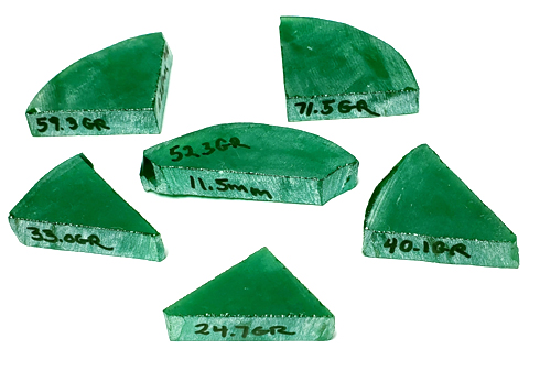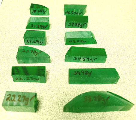 about 160grams even with a thinner diamond blade and saw than what was used in the past to slice 8 pieces from a large Alex Pull in the past. These 3 slices as well as